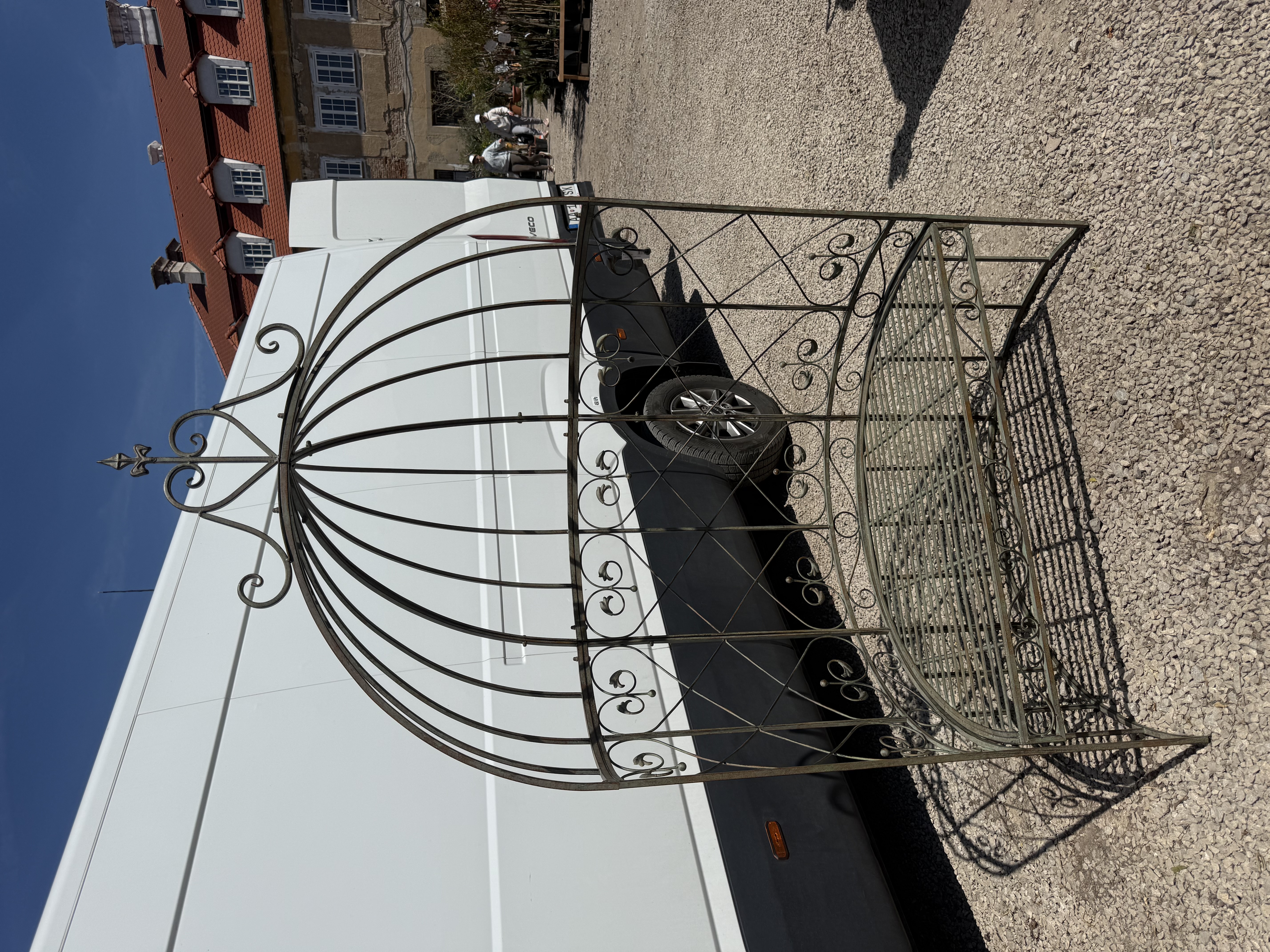 - Kovová lavička s kopulou, širka 120x62cm, výška 210č